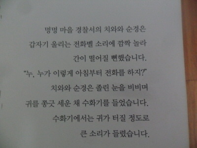 멍멍마을의 치와와 순경이 갑자기 울리는 전화벨