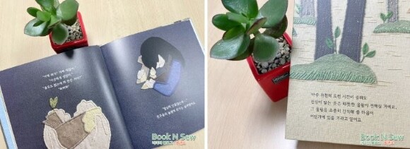 책이 이야기하는 메시지와 아플리케한 자수가 따뜻한 감성을 불어넣어 주어