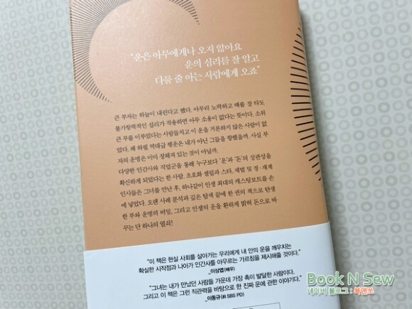 운에 대한 심리를 알고, 운을 다룰 줄 아는 능력이 뒷받침되어야 온전히 그 운은 내 것이 된다는 작가의 이야기들을 읽고 나의 마음가짐을 또 바꿔본다.