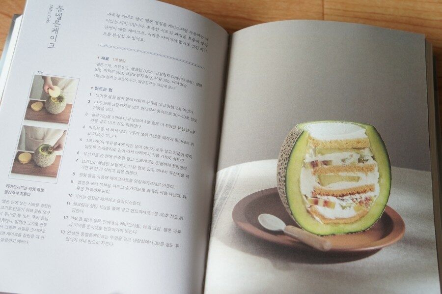 그 중에 멜론의 과육을 파내고 남은 멜론 껍질을 이용하여 통멜론케이크를 만들었더라구요.