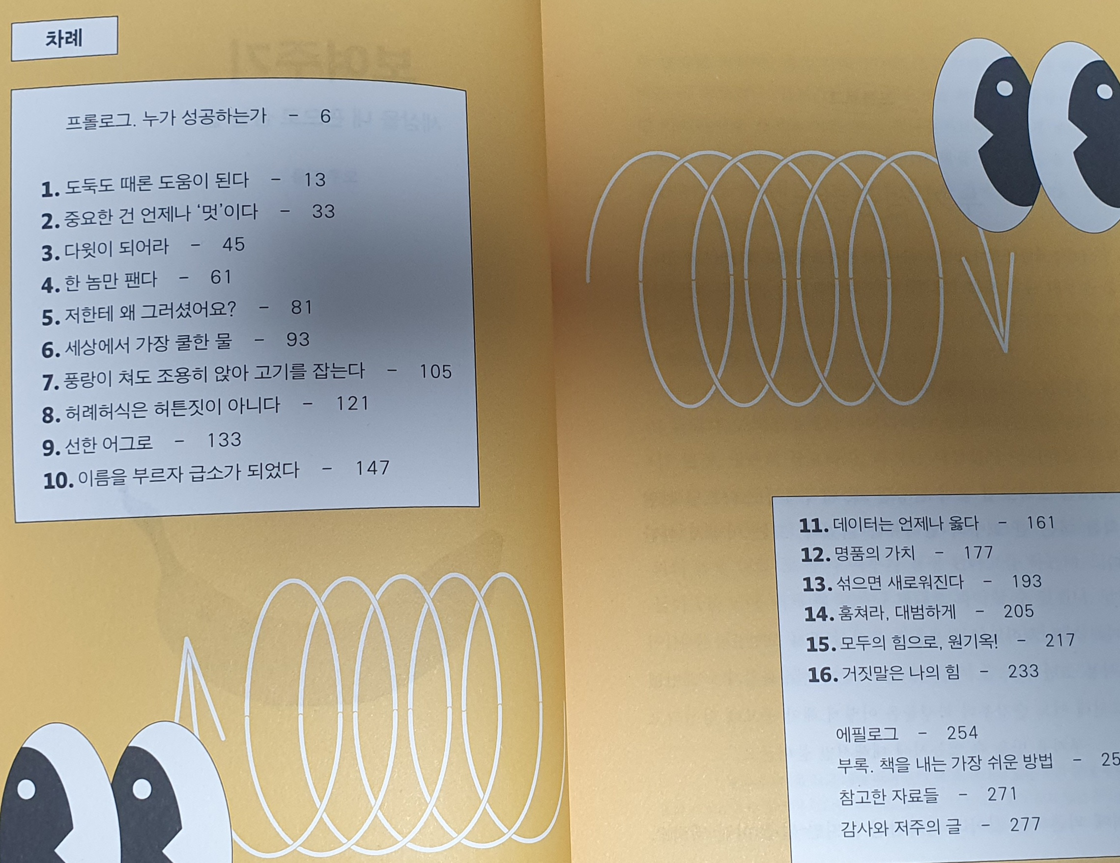 여기에 나왔던 다양한 방법을 일상생활에서 적용할 수 있으면 조금 더 운이 좋은 확률이 높은 성공적인 인생을 살 수 있습니다. 어쩌면 처세술이라고 도 할 수 있는 실생활에서 써먹을 수 있는 방법들이 많아서 좋았습니다.