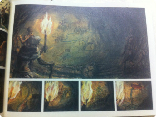 전사들을 데리고 어느 동굴의 숨겨둔 벽화를