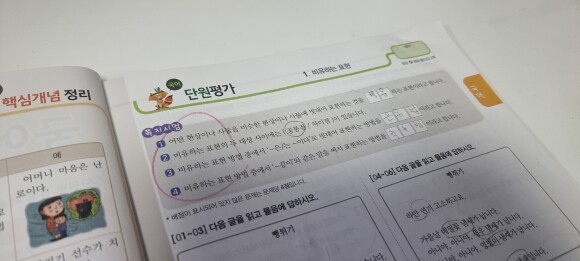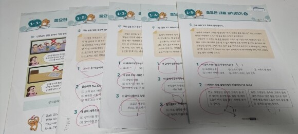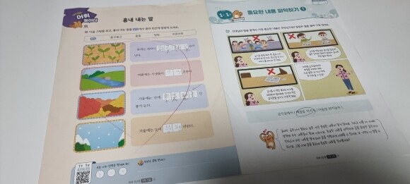 아이가 꼭 알아야 하는 국어 개념을 읽고 난 후 쪽지시험으로 체크하고 문제를 풀어보았어요. 아이는 한눈에 보기 좋게 개념설명이 잘 나와 있어서 좋았다고 해요. 문제를 풀어보고 동그라미 수가 많아서 엄청 좋아 했어요. 아이 스스로 열심히 학습을 한거 같아서 칭찬을 많이 해주었어요.