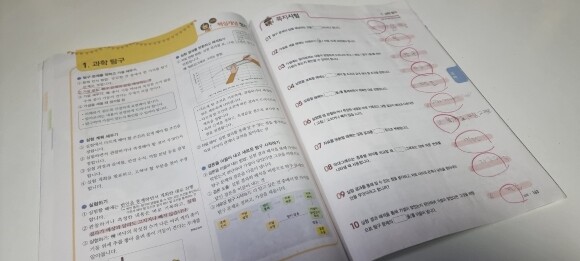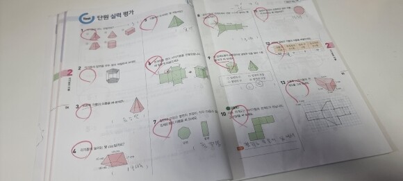 아이가 좋아하는 수학과목 단원평가문제를 풀어보았어요. 자신있게 문제를 풀었지만 아이가 생각했던 것과 반대의 결과가 나왔어요. 그래서 아이가 실망을 많이 하고 왜 틀렸는지 다시 살펴보는 시간을 가져보았어요. 아이가 어려워 하는 부분이라 많이 틀릴거 같은 국어는 잘 풀어가고 자신있는 수학에서는 오답이 많이 나왔는데요. 이렇게 단원평가 문제집으로 체크해 보지 않았다면 잘 하고 있다며 그냥 넘어갔을거 같아요. 다시 개념 정리를 하고 다시 풀어보면서 내가 무엇을 놓치고 있는지 체크해 볼 수 있었어요.