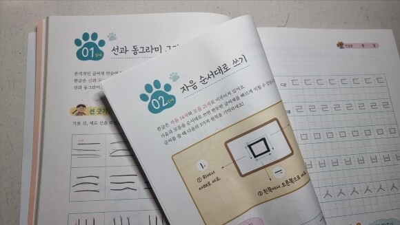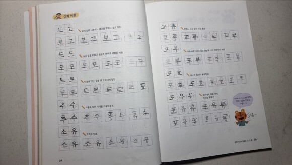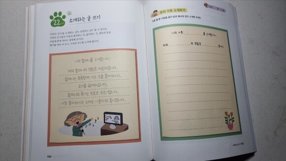 그러다 보니 자신감도 많이 낮아지고 글씨 쓰는것을 많이 싫어했어요. 그런 아이에게 글씨 쓰기 연습을 하면서 어휘의 의미를 짚어보고 다양한 글쓰기를 해볼 수 있어 이 교재를 선택했어요.