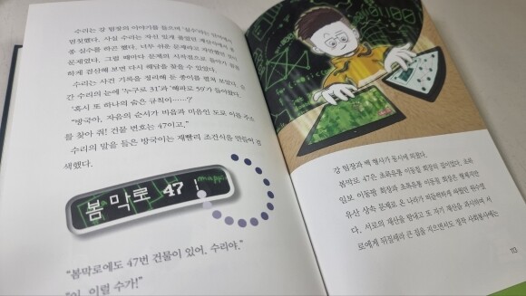 절도뤼팽을 잡기 위해 어린이 수사대 넘버스와 함께 주어진 단서로 범인을 찾아보았어요. 아이는 절도현장에 남긴 단서와 그 단서로 어떻게 절도뤼팽을 잡을 수 있을까에 집중했어요. 문제를 해결해 나가는 과정이 너무 재미있다고 말을 하는 아이는 "엄마 이책 진~짜 재미있어요"라고 말을 하며 형과 동생에게 추천을 해주고 학교에 가져가서 읽을거라고 말을 하며 가져가요. 사건 현장에서 수학의 개념들이 사용된다는 사실에 엄청 놀라워 했는데요. 새로운 사실을 하나씩 알게되고 어린이 수사대가 조금씩 해결해 나가는 과정들이 너무 재미있다고 해요.