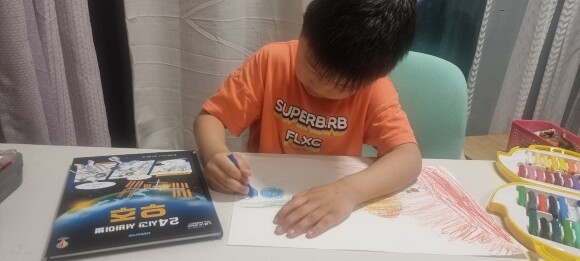 우주비행사가 되는 것이 꿈인 아이는 행성을 그리고 우주는 어떨까? 늘 상상을 해요.