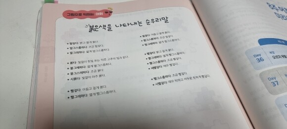 손가락의 여러 이름들과 붉은 색을 나타내는 순 우리말, 우리 한복의 명칭에 대해 알아보면서 새로운 어휘를 알게 되어 아이가 많이 흥미있어 했어요.