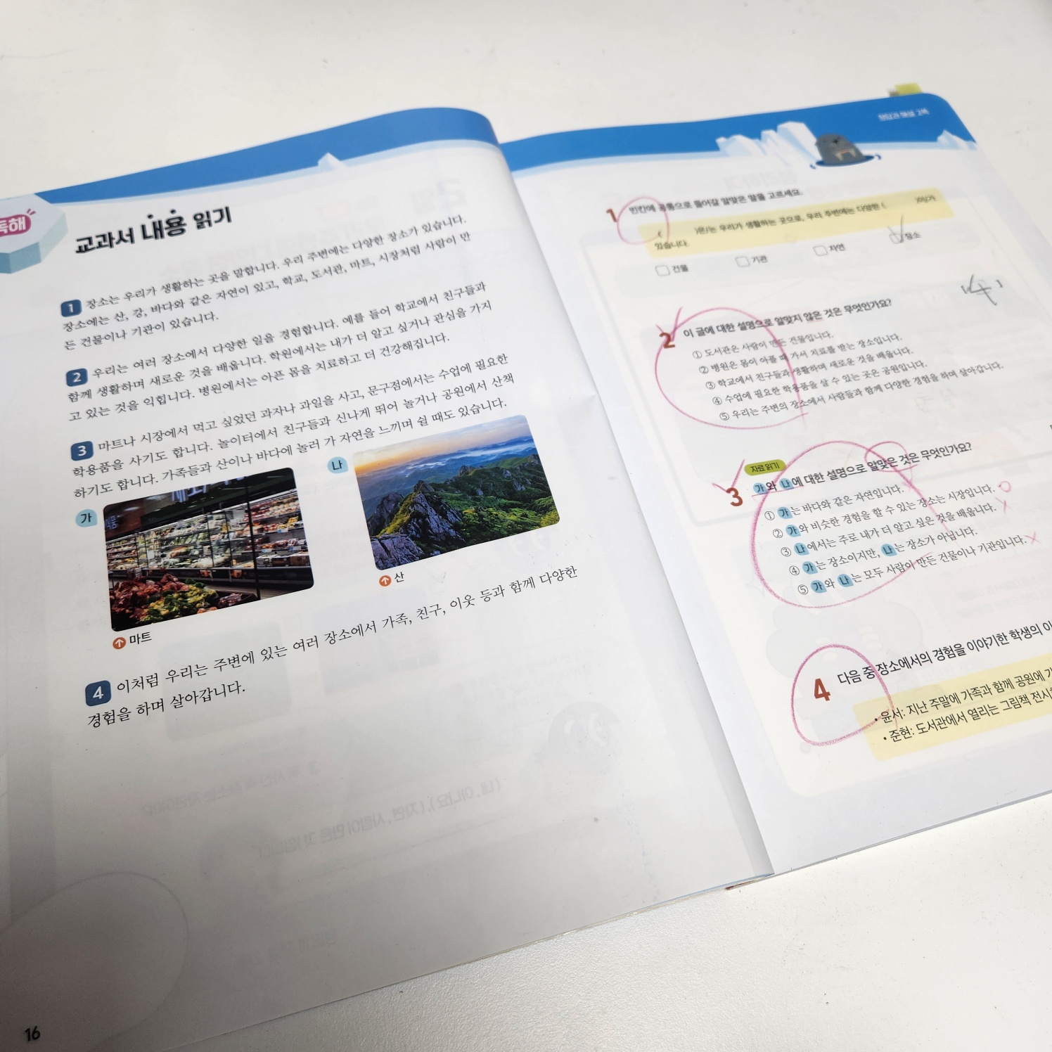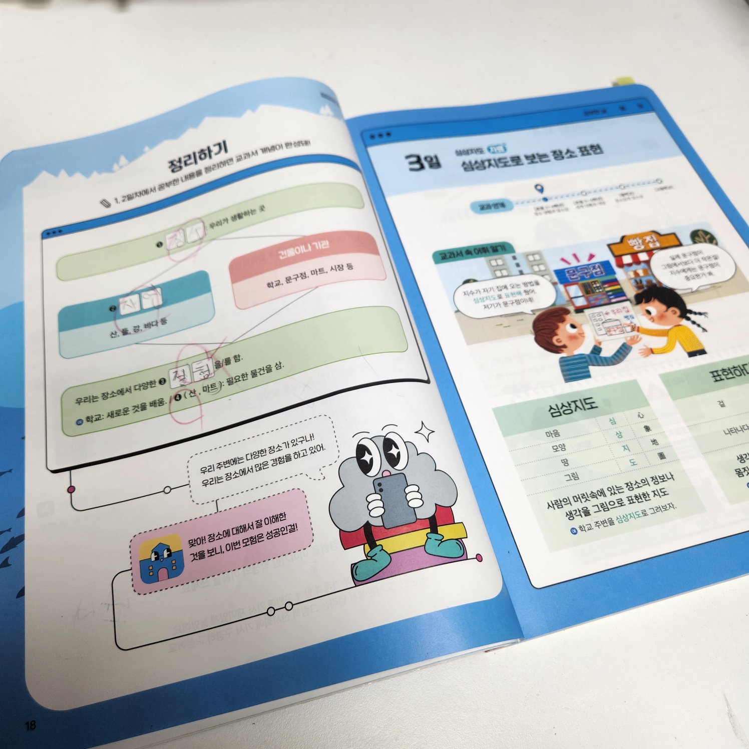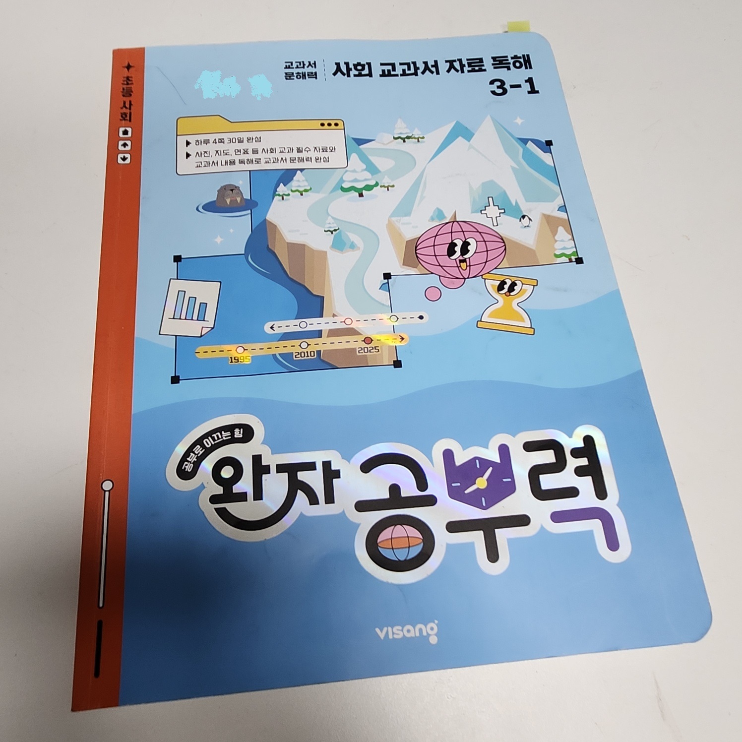초등 3학년을 앞두고 교과 학습을 어떻게 해야할지 고민을 했어요. 형님들이 사회를 어려워 했는데요. 완자 공부력 사회 교과서 자료 독해를 통해서 사회 자료를 보면서 개념학습을 하며 문해력을 키울 수 있는 교재여서 아이와 재미있게 학습을 하고 있어요. 아이도 어렵지 않고 재미있다고 해요.초등 3학년에 배우는 부분을 학습할 수 있었어요. 어떤 부분을 배우는지 알아보고 난 후 학습을 시작할 수 있었어요.교과서 자료 읽기 - 자료 더 읽기 - 교과서 내용 읽기 - 정리하기 순서로 학습을 할 수 있었어요. 하루 4쪽 30일동안 초등 3학년 1학기 사회 자료 읽기 학습을 할 수 있는데요.사회 어휘와 개념을 어렵지 않고 흥미있게 학습을 할 수 있어 좋았어요. 글로 통해서 학습을 시작했다면 아이가 어려워 했을거 같다는 생각이 들었는데요. 사진, 지도, 그래프 등 사회 자료를 통해 어휘와 개념을 알아보고 교과서 글을 통해서 흥미를 높여갈 수 있어 좋았어요. 처음 사회 학습을 시작하는 아이들이 흥미있게 학습할 수 있는 문제집이였어요.