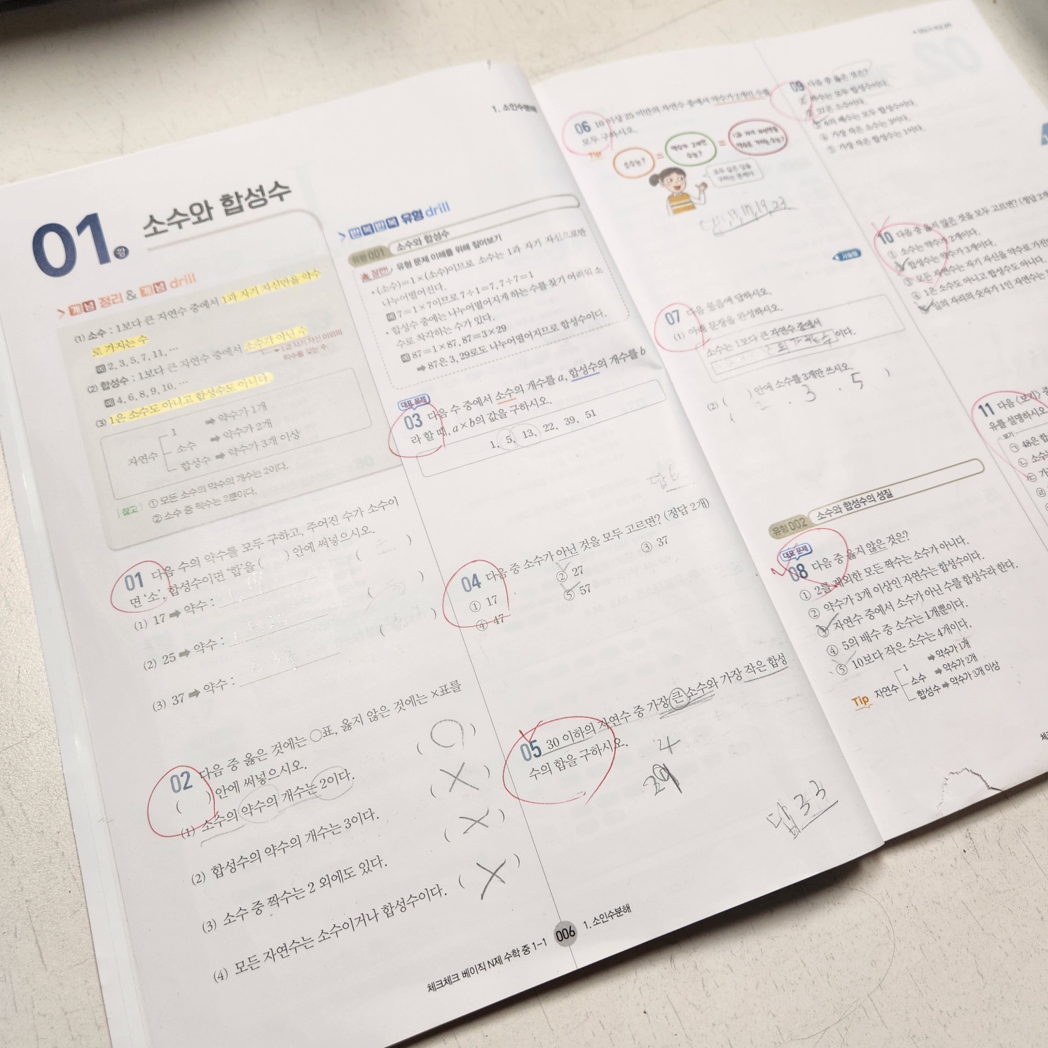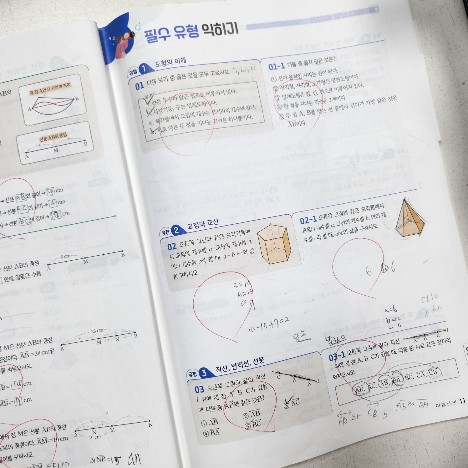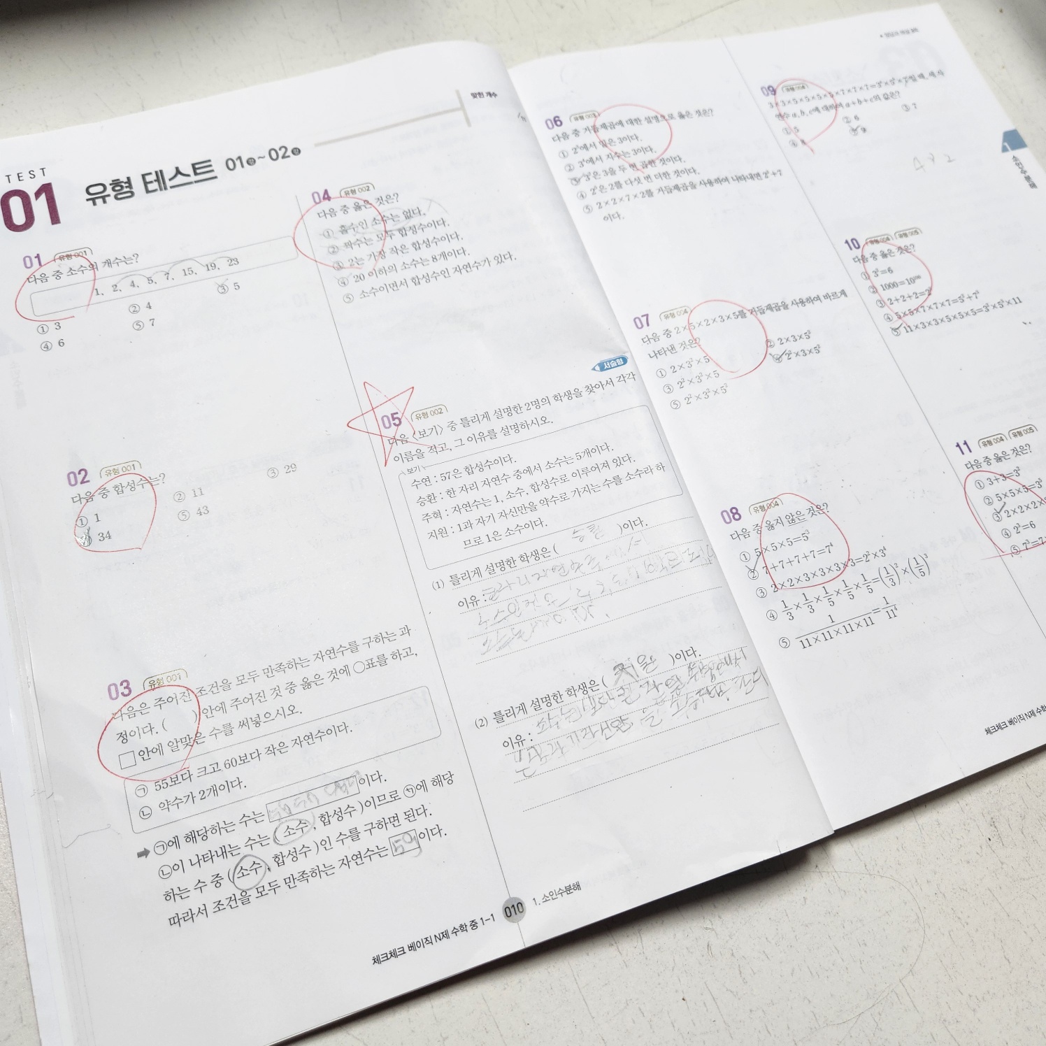 겨울방학 예비중1 아이와 풀고 있는 체크체크 베이직 시리즈에요. 처음 체크체크 베이직을 풀 때 개념이해가 잘 된다고 말을 했어요. 1단원을 모두 풀고 단원정리를 하는데 아이가 이해가 안가고 어렵다는 말을 해요. 그래서 시작한 체크체크 베이직N제는 개념을 다시 짚어보고 유형문제를 풀어보면서 아이가 잘 이해가 가지 않거나 놓친 부분을 다시 짚어가며 학습을 할 수 있었어요.요즘 아이와 유형문제를 풀면서 잘 이해하지 못한 부분을 다시 체크를 하고 오답노트를 활용하고 있어요. 이렇게 문제를 풀어보면서 아이도 이제 조금 이해가 된다고 말을 해요. 학기중에는 아이와 심화문제를 풀어보기로 했는데요. 겨울방학동안 체크체크 베이직 시리즈로 기초 탄탄 수학 자신감을 높여줄 수 있어 좋을거 같아요.
