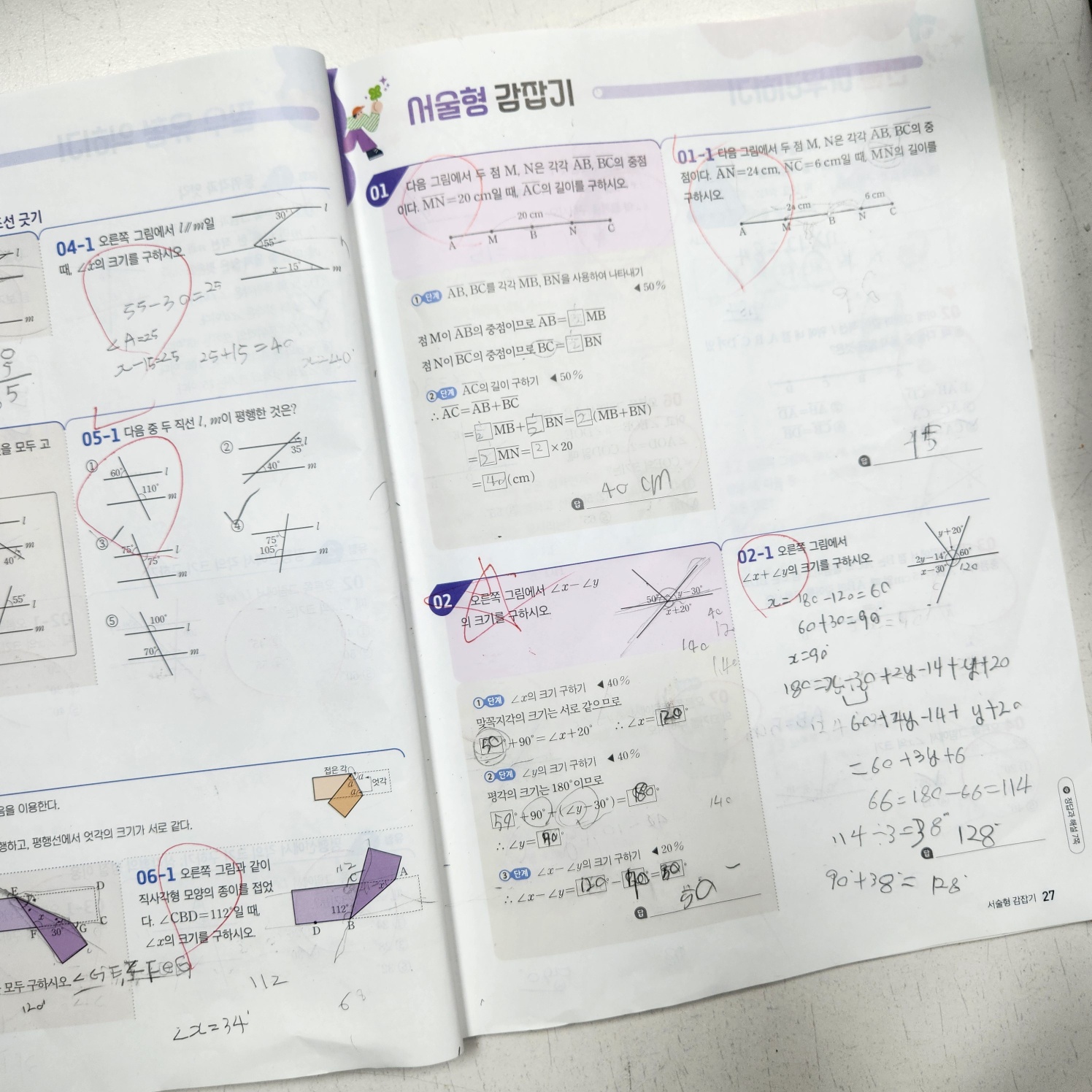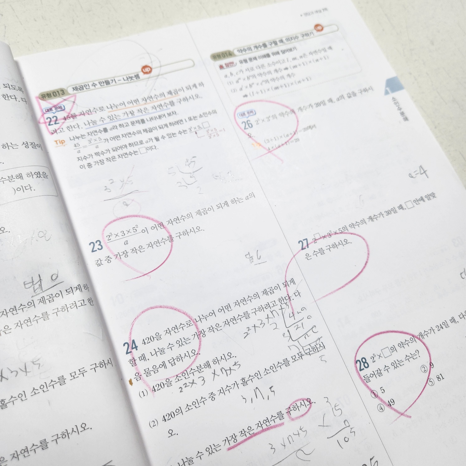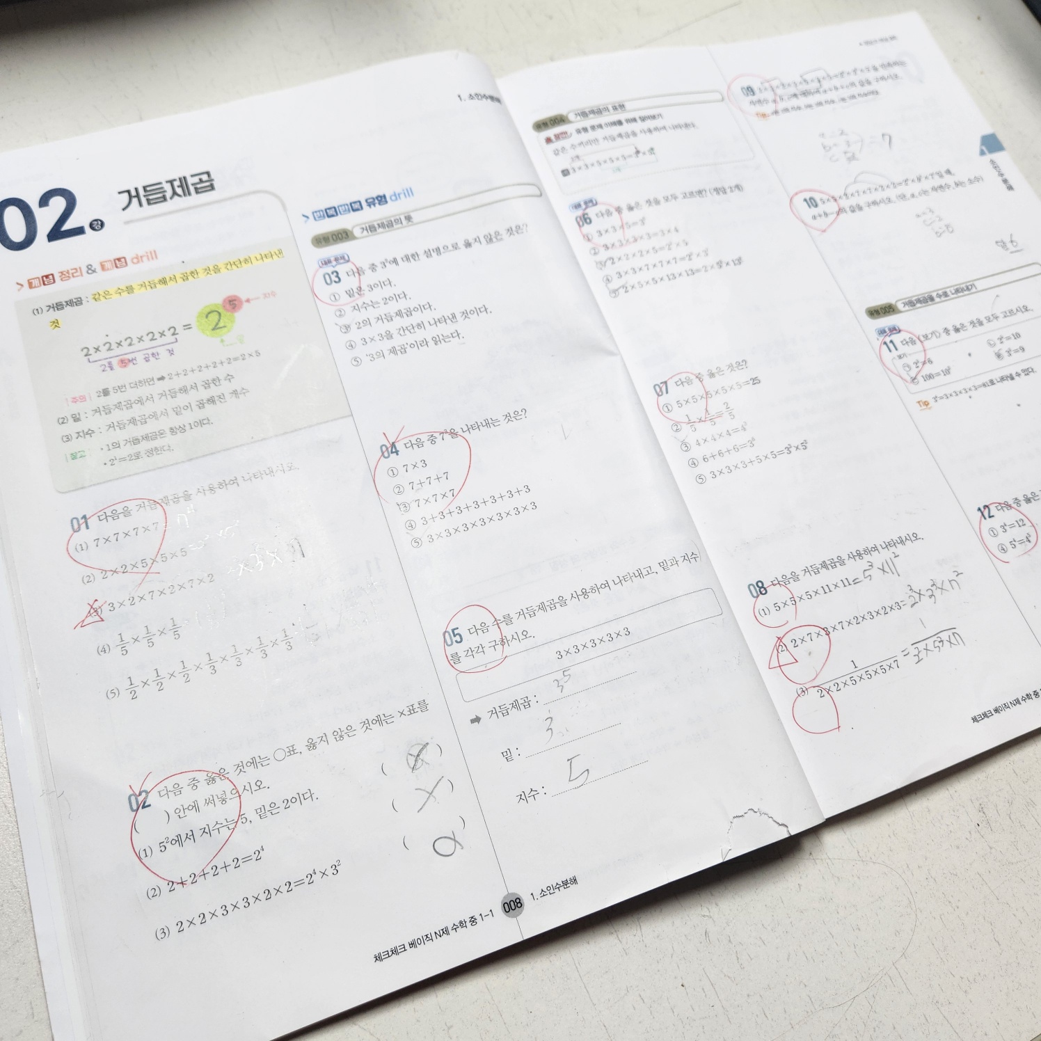 겨울방학 예비중1 아이와 풀고 있는 체크체크 베이직 시리즈에요. 처음 체크체크 베이직을 풀 때 개념이해가 잘 된다고 말을 했어요. 1단원을 모두 풀고 단원정리를 하는데 아이가 이해가 안가고 어렵다는 말을 해요. 그래서 시작한 체크체크 베이직N제는 개념을 다시 짚어보고 유형문제를 풀어보면서 아이가 잘 이해가 가지 않거나 놓친 부분을 다시 짚어가며 학습을 할 수 있었어요.요즘 아이와 유형문제를 풀면서 잘 이해하지 못한 부분을 다시 체크를 하고 오답노트를 활용하고 있어요. 이렇게 문제를 풀어보면서 아이도 이제 조금 이해가 된다고 말을 해요. 학기중에는 아이와 심화문제를 풀어보기로 했는데요. 겨울방학동안 체크체크 베이직 시리즈로 기초 탄탄 수학 자신감을 높여줄 수 있어 좋을거 같아요.