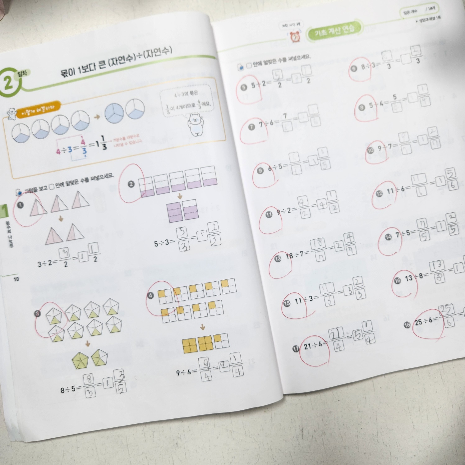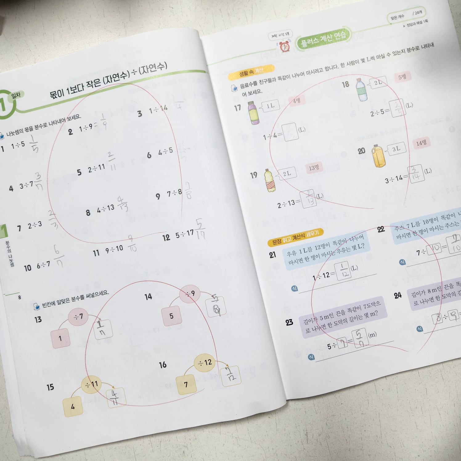 아이가 초등 5학년이 되면서 수학에 대한 흥미가 많이 낮아졌어요. 연산에서도 실수가 많이 나오고 개념, 유형문제를 풀어보았지만 어렵다는 말과 학습을 미루는 행동이 많았어요. 그런 아이를 보면서 걱정을 많이 하게 되었는데요. 문득 교재에 변화를 주고 싶다는 생각이 들었고 아이와 대화를 통해서 변화를 주고 있어요.그렇게 찾다 만나게 된 초등연산 문제집이 수학리더연산 6A였어요.아이가 꼭 알아야 하는 연산 개념을 짚어보고 난 후 개념문제를 풀어보았어요. 하루 2장씩 연산문제집을 풀어보고 있는데요. 학습 시간이 길지 않고 어렵지 않지만 아이가 꼭 알아야 하는 개념을 꼼꼼히 짚어갈 수 있어 좋았어요. 그리고 생활속 수학과 문장제를 통해서 어떻게 풀어나가야 하는지도 생각해 보는 시간을 가질 수 있었어요. 아이가 요즘 아침 공부로 수학리더연산을 풀어보고 있는데요. 엄마 권유 없으 스스로 자리에 앉아 연산문제를 풀어보는 아이의 모습이 너무 놀랍고 기특해서 요즘 칭찬이 많이 늘었어요. 아이는 학습부담이 적고 오답이 많이 안나오니 너무 신이난다고 말을 해요.한 단원이 모두 마무리 되면 내가 배운 부분을 잘 이해했는지 복습하는 시간을 가져볼 수 있었어요. 다양한 유형의 문제를 만날 수 있는 부분이 좋았는데요. 이렇게 수학의 흥미를 넓혀 줄 수 있어 너무 좋았어요. 초등 6학년 수학리더로 쭈욱 풀어보기로 했답니다. ^^