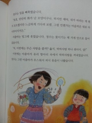 아줌마는 용기없는 정수에게 사탕을 주면서 사탕을 먹으면 용기가 생길거라고 주문도 알려줍니다.
