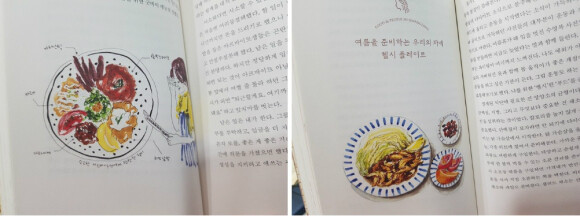 페이지 중간중간에 작가가 그린 사물 일러스트가 자주 나온다. 마치 스티커나 이모티콘으로 제작하면 예쁠 만한 것들. 작가의 취향과 디테일이 엿보이는 순간이다. 진정한 덕질도 하고, 열정을 다해 사는 모습이 부러웠다.