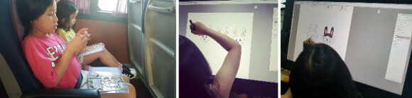 요렇게 그리고 싶다고 아빠에게 물어보더라구요.