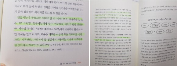 특히 미래의 유망 분야와 직종을 전망하고, 어릴 때부터 미리 공부해두면 좋겠다는 조언이 눈에 띄었다. 몇 년 전부터 인문학 붐이 일어나면서 아이도 어른도 인문학적 소양을 갖춰야 한다는 분위기가 만연했는데, 이 책에서는 이에 못지 않게 이과적 소양을 기르는 데도 무게를 두어야 한다고 강조한다. 앞으로 발전할 분야가 기술과 바이오, AI 등 이과적 소양이 바탕이 되어야 가능한 분야가 많기 때문이다. 새롭게 깨닫게 된 사실이라 무척 흥미롭고, 관련 분야를 더 찾아보고 싶다는 생각이 들었다.