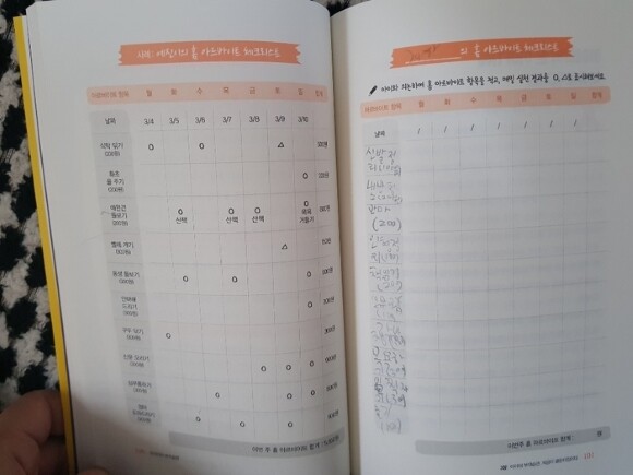 실제로 우리 여덟 살 아이에게도 이 페이지를 작성하도록 자리를 마련해주었다. 용돈을 그냥 준 게 아니라 신발정리 500원, 문제집 풀이 300원 등으로 이미 주고 있었던 터라 반가웠다. 그리고 책 내용을 참고하여 더 다양하고 구체적인 홈 아르바이트 단가표(?)를 작성했다.