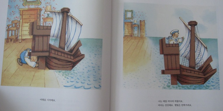 작고 약해 보이지만 당차보이는 꼬마아이~~ 작은배로 어떤 항해를 하는지 기대를 안고 아이와 책을 펼쳐 보았네요~~~