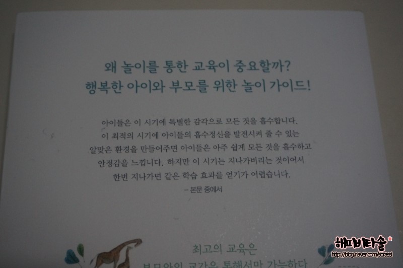책 뒤표지를 보니 놀이를 통한 교육의 중요성을 강조하고 있어요.