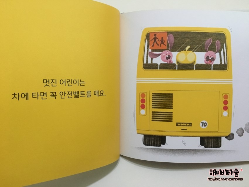 버스에서는 꼭 안절벨트를 한다는 내용에