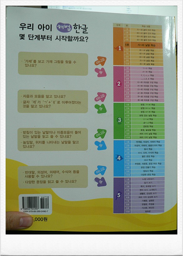 이렇게 해법 한글은 총 5단계로 구성되어 있어 아이의 인지에 따라 한글 단계를 선택할 수 있답니다.