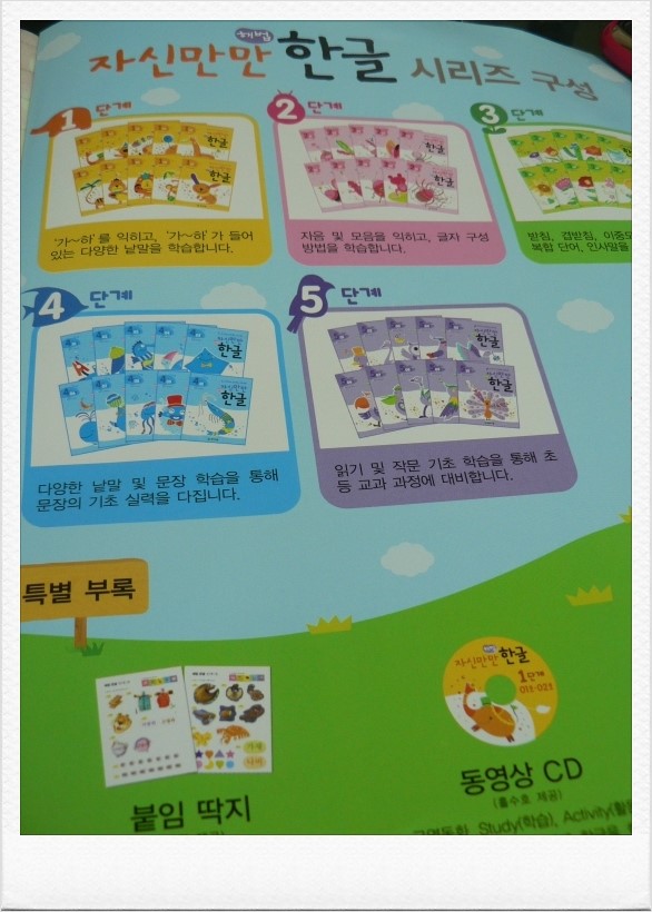 2단계 동화에서 나왔던 내용의 흐름대로 한글들을 파악할 수 있고 이곳에서 스티커 작업을 꽤 많이 해서