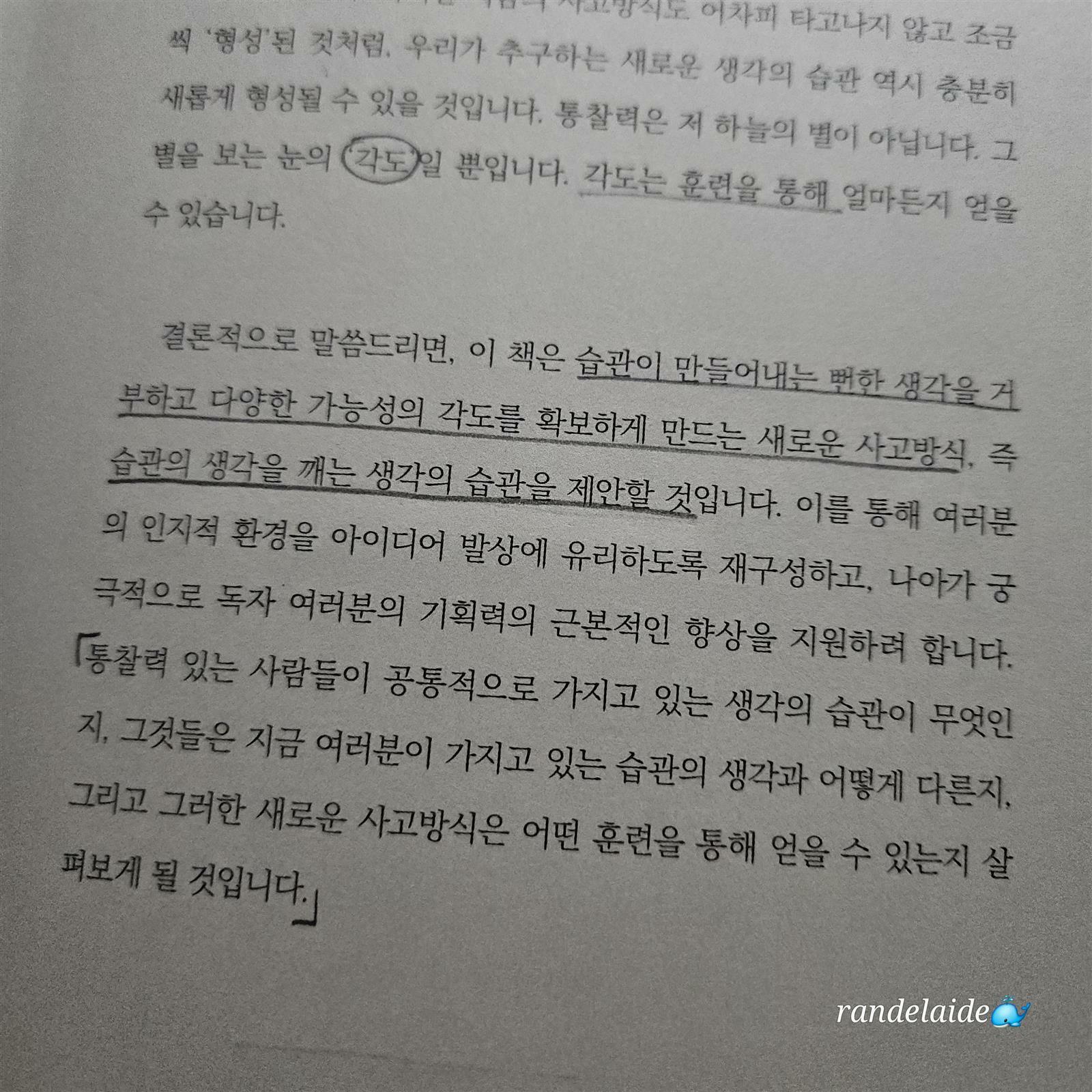 생각의 전환을 이끌어 준 책이자 앞으로도 저의 생각을 넓혀줄 책이에요. 저는 다독하면서도 변화를 느끼지 못해 책태기였어요. 저의 책태기를 와장창 깨버려주었어요. 배운다는 것의 의미가 전문가나 학자의 생각을 믿고 따른 것이 아닌 나의 생각과 견주어 다름 속에서 새로운 생각을 이끌어 낸다는 것이었어요. 저는 제 생각은 빼고 그들의 주장을 맹목적으로 읽기만 했기에 허울뿐인 독서였어요. 소설 형식에 곳곳의 일러스트, 주인공이 너무나 저 같아서 감정이입이 됐어요. 마케팅 서적이라서 광고 이야기들이 주를 이루지만 그 과정 속에는 습관적으로 해오던 생각을 깨부수고 자유롭게 생각의 양을 늘리고 생각의 질을 높이며 생각의 폭을 넓힐 수 있는 방법들을 배워가는 여정이 담겨있어요. 10년 전에 알았더라면 더 좋았겠다는 아쉬움이 있으면서도 꾸준히 회자된 덕분에 개정판을 이제라도 만날 수 있어 감사했어요. AI의 초고속 발전으로 불안하다면 이 책을 강추해요.