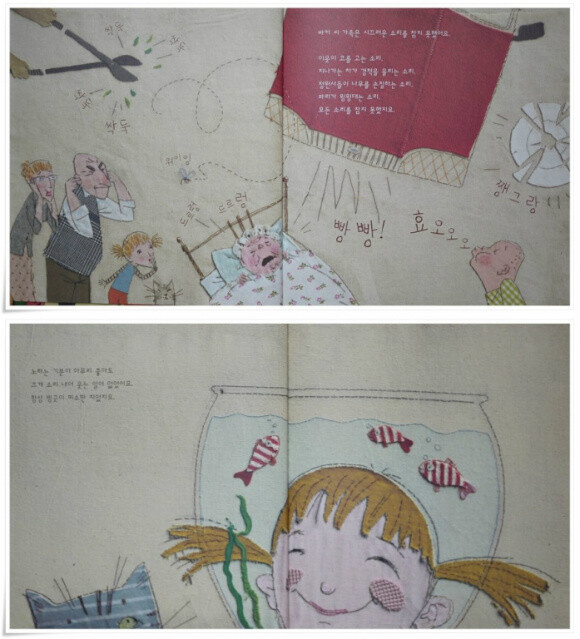 가위질 소리가 시끄럽다고 솜을 붙여놓고