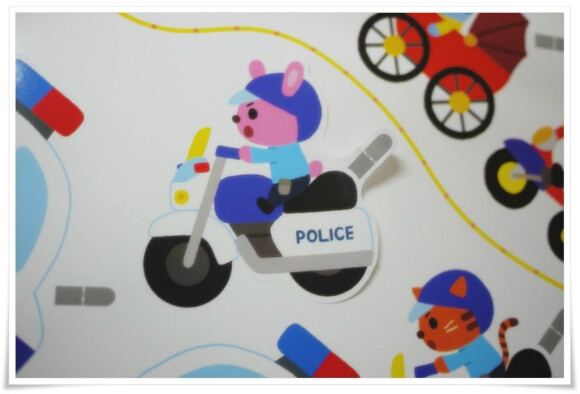 환경판에 넉넉하게 붙일수 있도록 되어있는 경찰오토바이와 경찰차~