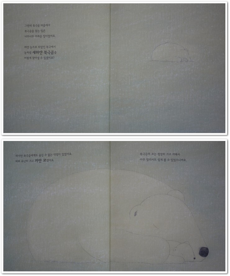 북극곰의 까만코는 멀리서도 잘 보일만큼 크고 까매서죠