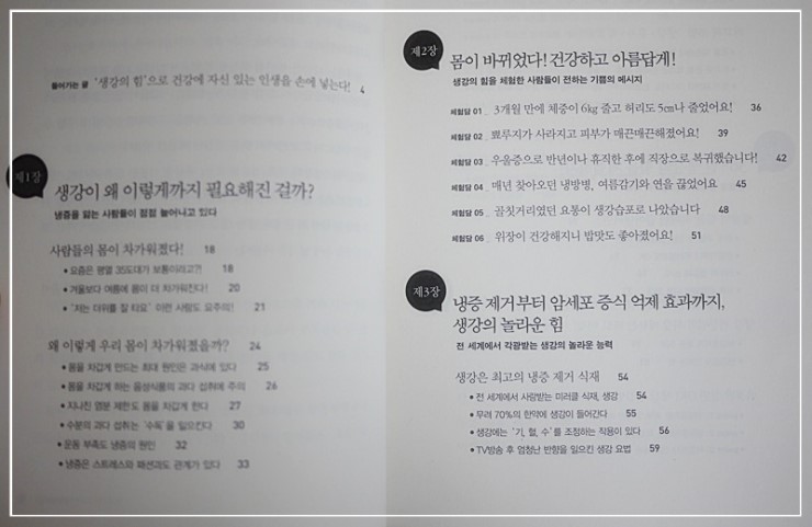 생강에 대한 어떤 이야기를 썼는지 목차를 한번 볼까요?