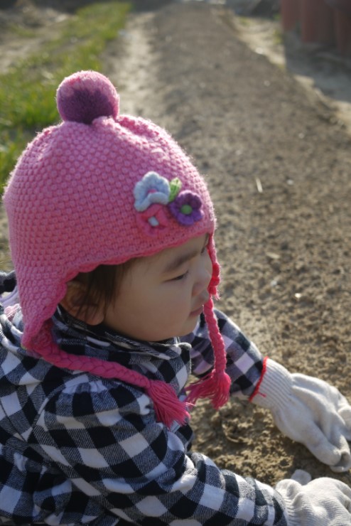밭에 있는 것은 뭐든지 신기해서 만지고