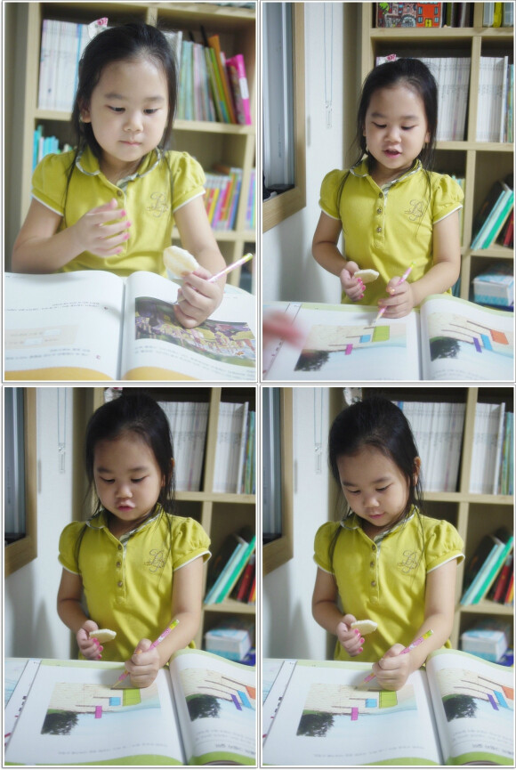 집에 오면 오자마자 책을 손에 쥐고 이리저리 활동하는 엘이네요!!^^
