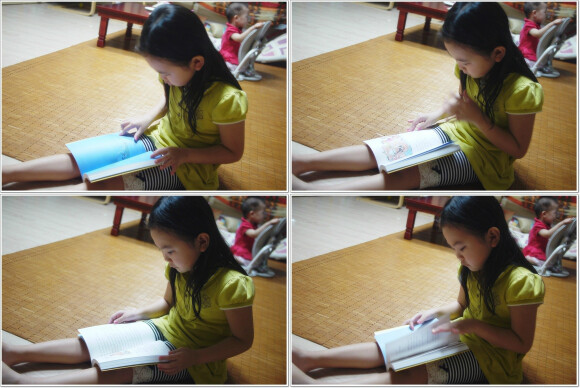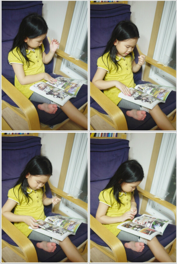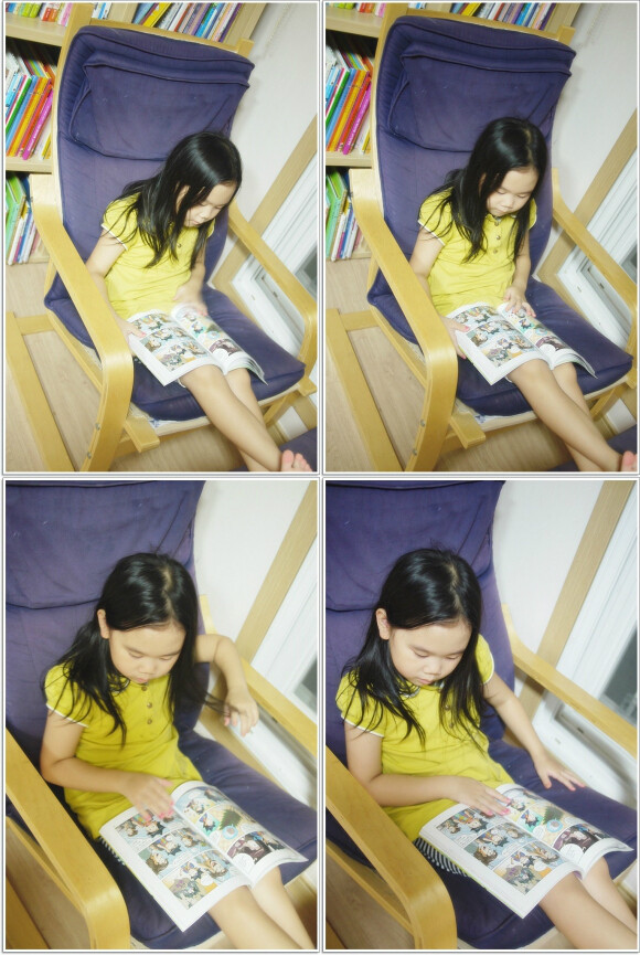 예비초등이라서 동화책과 만화책 반반 보고 있는 엘인데요