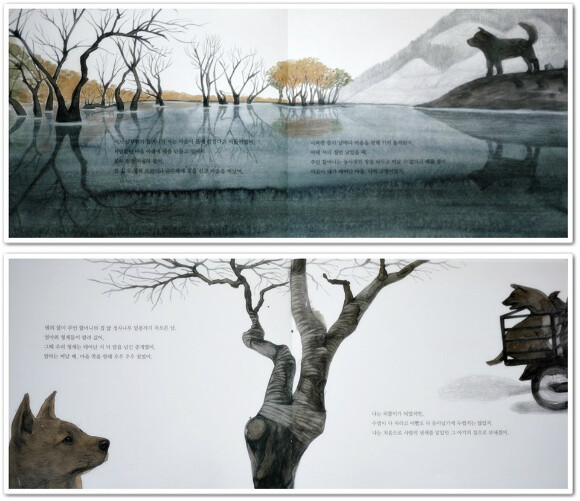 그러던 어느날 보리가 살고 있는 마을에 땜이 들어서면서 마을은 물에 잠기고 말았어요