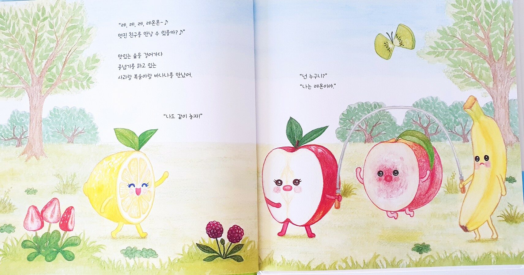 레몬은 노래를 부르며 친구를 찾아 나서고, 줄넘기를 하고 있는 사과, 복숭아, 바나나를 만나자 같이 놀자고 말하지만 자신들과 다른 맛이 난다는 이유로 친구가 되려고 하지 않는다.
