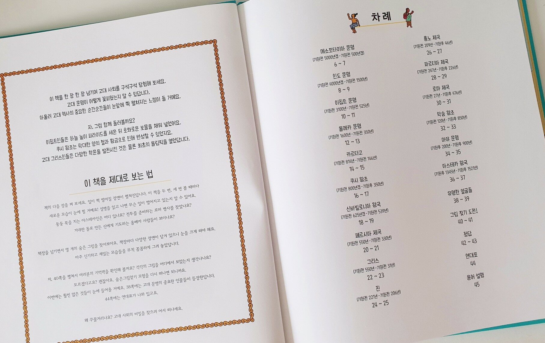 책을 보면서 고대 문명에 대해 알아보고 나서 '유명한 얼굴들'이 한페이지에 나와있어서 이것만 기억해도 너무 좋을거 같았다. 얼굴들에 특징들이 있어서 좀더 기억에 오래 남을수 있을수 있었고, 마지막에 나온 '그림 찾기 도전!'은 그림들을 보면서 어디에서 나왔는지를 기억하면서 다시 그 그림을 찾아보는시간을 가져보면서 한번더 복습하는 느낌으로 이 책을 깊게 알아가는 시간이 될수 있었다.
