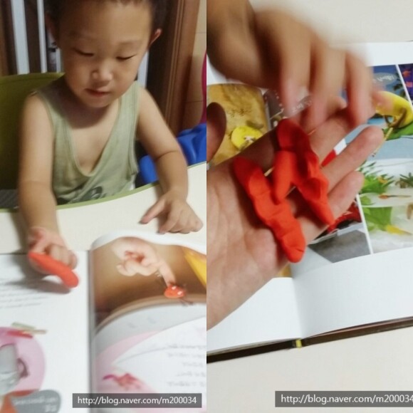 체험 활동 삼아 얼마전 구매한 점토로 같이 책을 보면서 여비만의 코딱지 완성!ㅋㅋ저 쬐만한 콧구멍에서 엄청 큰 코딱지가 세덩어리씩이나 만들어 졌단다..ㅋㅋㅋㅋㅋ아~손수 엄마 손에 쥐어주는 여비 코딱지!ㅋㅋ