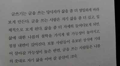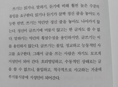 글쓰기에 대한 자세와 잇점들을 이야기 하고 있다.