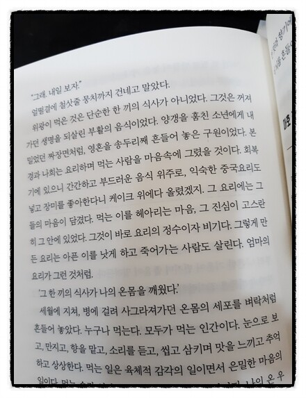변화와 베푸는 것에 두려워하지 않는 요리의 부심이 느껴지는 그런 소설이다.