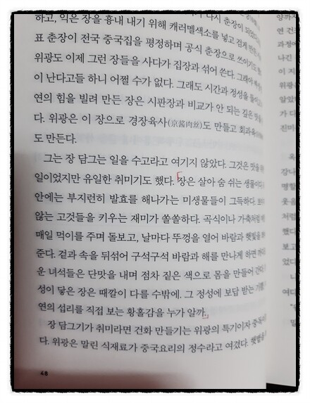 그리고 소설 속에서 재료에 대한 설명과 함께 요리를 하는 과정들, 마음가짐까지 요리에 대한 저자의 상세한 표현은 주인공인 위광인듯한 느낌을 받았다.