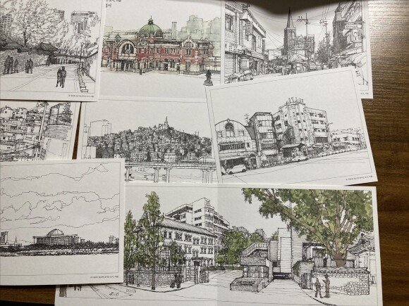작가는 자신이 할수 있는 도시스케치로 말할 수 없는 것을 그림으로 그렸다고 한다.