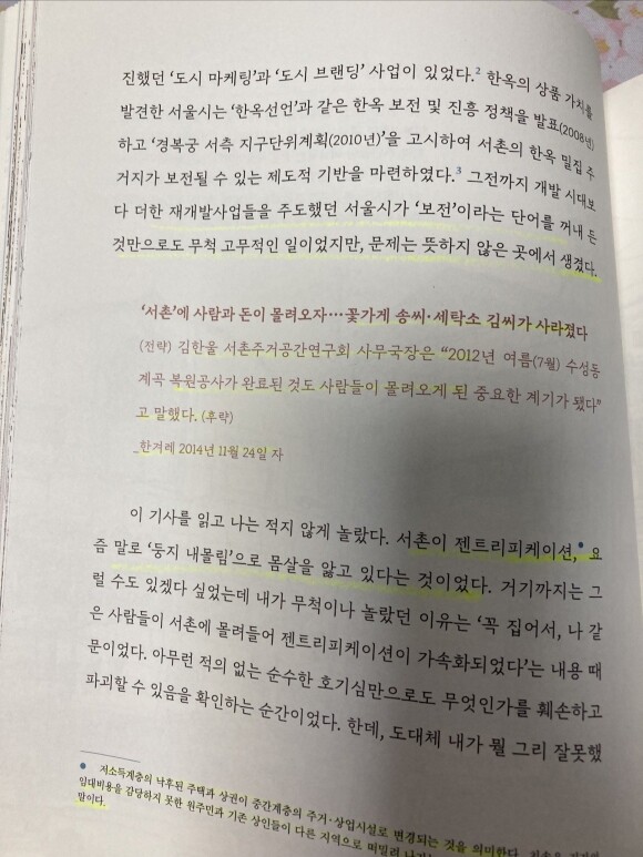 서촌에 대한 이야기를 하면서 젠트리피케이션에 대한 이야기를 한다.