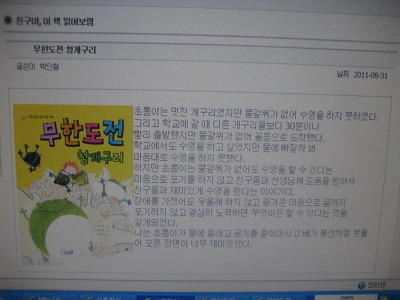 책을 읽고 난 아이 학급 홈피에 친구에게 재밌는 책을 알리는 게시판에