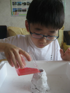 책을 읽고 난 후 아이와 함께 직접 화산 폭발 실험을 해보았답니다.