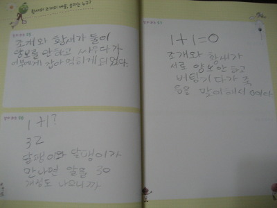 퀴즈에 대한 답을 곰곰이 생각해 본 후 열심히 적네요.