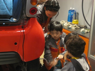 자동차 내부도 들여다보고 바퀴도 갈아보면서 즐거운 시간 보냈답니다.