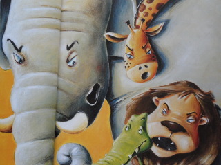 초원의 왕이 되기 위한 선거에 사자,기린,코끼리,악어가 후보로 나섰습니다.
