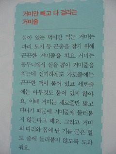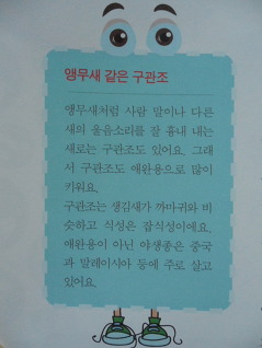 거미줄에 걸리지않는 거미의 비밀이며 앵무새를 닮은 구관조이야기 등