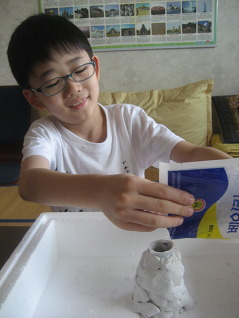 책을 읽고 난 후 아이와 함께 직접 화산 폭발 실험을 해보았답니다.